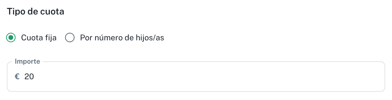 Cuota fija: introduce un importe único (por ejemplo, 20 €).