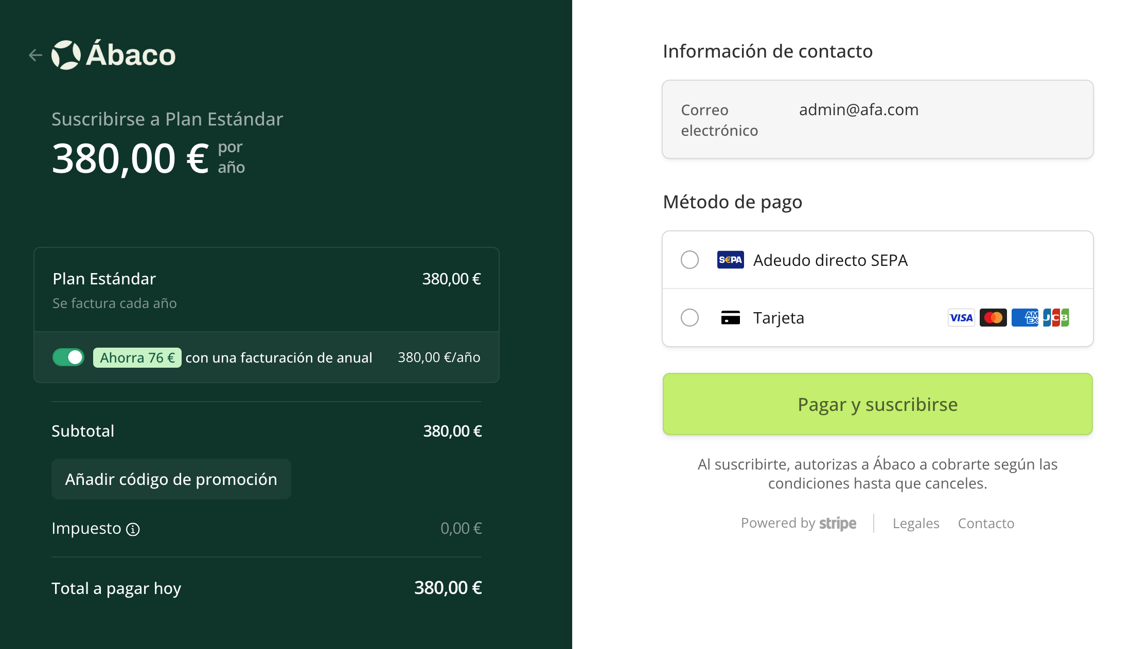 Desde esta sección podrás consultar, contratar o gestionar tu suscripción a Ábaco.