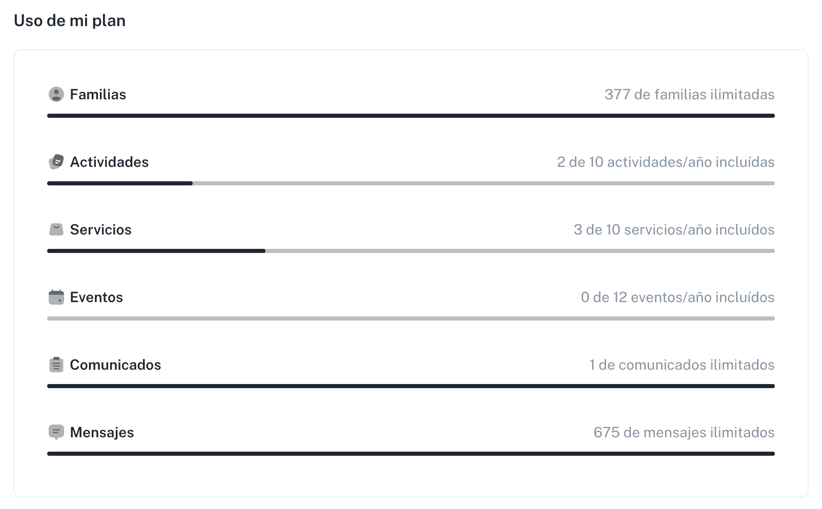 - Comunicados: número máximo de comunicados mensuales según tu plan.