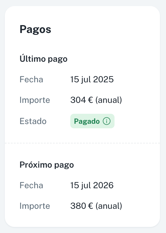 Desde esta misma pantalla de 'Suscripción' puedes consultar también cuál es el último pago realizado de tu suscripción actual y cuándo y de que importe será el siguiente.