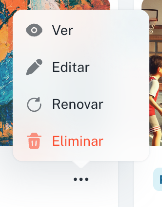 Cada tarjeta incluye un menú de tres puntos (⋯) con estas opciones: