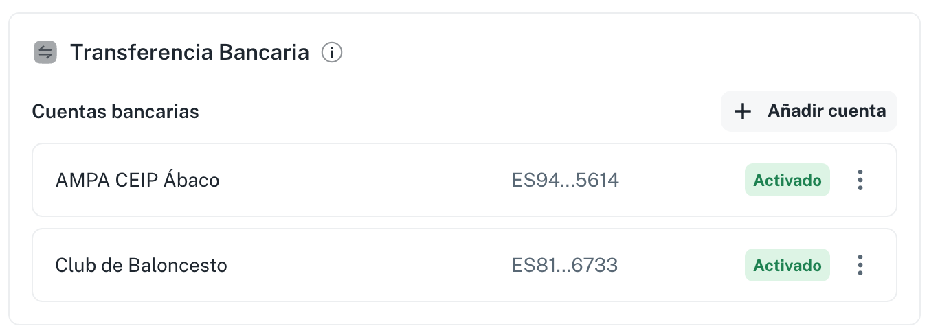 La nueva cuenta se añadirá automáticamente como método de pago activo y ya podrás ofrecerlo en cuota, extraescolares, servicios y eventos.