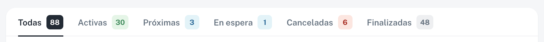 Cada pestaña muestra un contador con el número de inscripciones en ese estado.