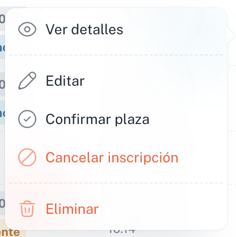 - Eliminar → borra la inscripción permanentemente.