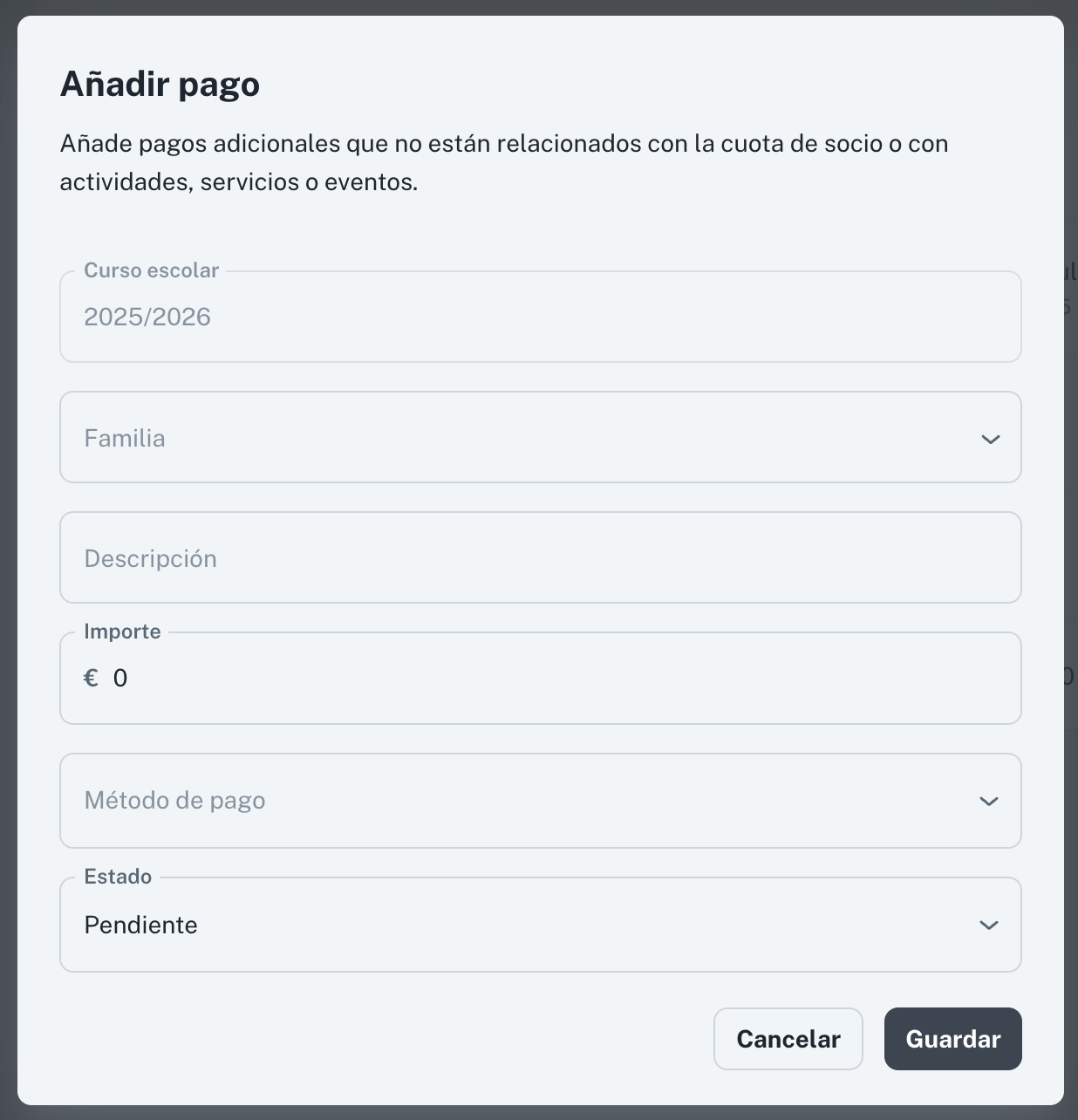 Esto te permite registrar cobros puntuales o ingresos que no provienen de inscripciones.