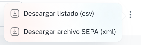 Estos filtros también afectan a las exportaciones (CSV o SEPA) que generes desde esta pantalla.