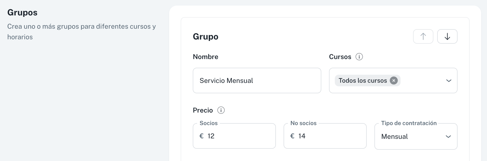 💡 Puedes combinar distintos grupos dentro de la misma actividad, por ejemplo: mensual, semanal y días sueltos.